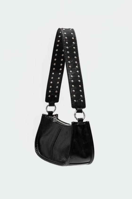 Bag Studded strap Metal ring detailing Faux leather fabric Polyurethane, Rayon Measurements (In): Width 4.7, Height 9.7, Depth 4.3 Item care: Hand wash
