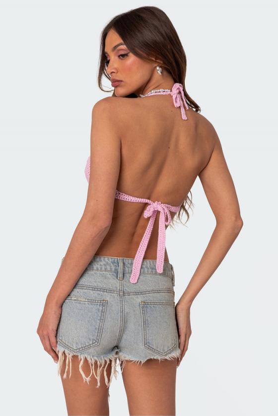 Bra top Halter neckline Neck and back tie closures Floral detailing Crochet fabric Acrylic Model wears size S Model height is 5’9 Item care: Hand wash