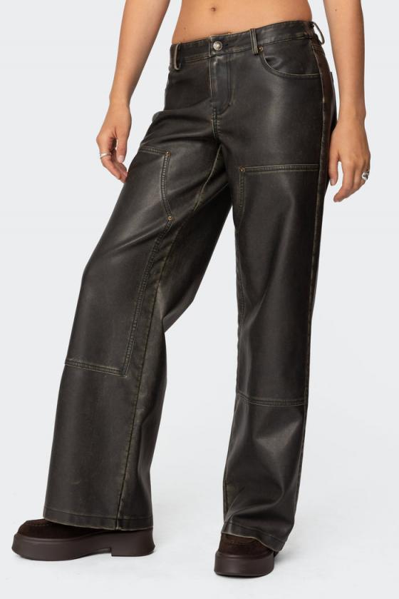 Pants Low rise waist Straight leg fit Panel detailing Faux leather fabric Polyurethane, Polyester Model wears size S Model height is 5’8 Item care: Machine wash at maximum 30C, do not bleach, do not tumble dry, do not iron, do not dry clean