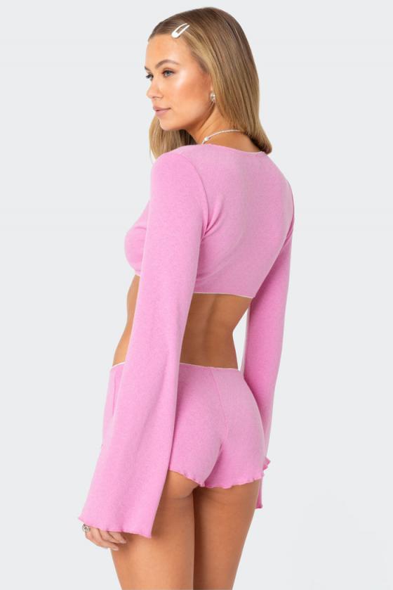 Edikted Swimwear | Womens Cherrie Tie Front Pointelle Top Pink